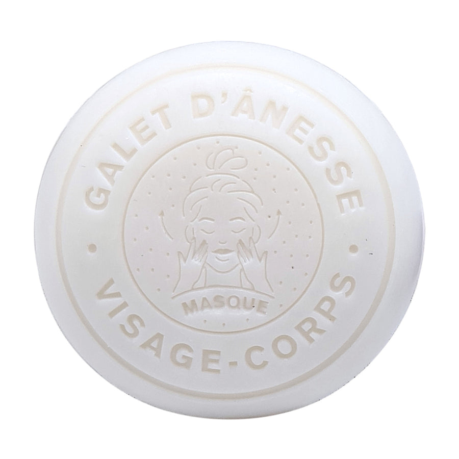 Acest produs solid pentru față și corp are rolul de mască solidă. Laptele de măgăriță protejează pielea împotriva uscării, în timp ce argila albă o hrănește și o catifelează. Combinația de ingrediente conferă iluminare și uniformizare a culorii tenului.