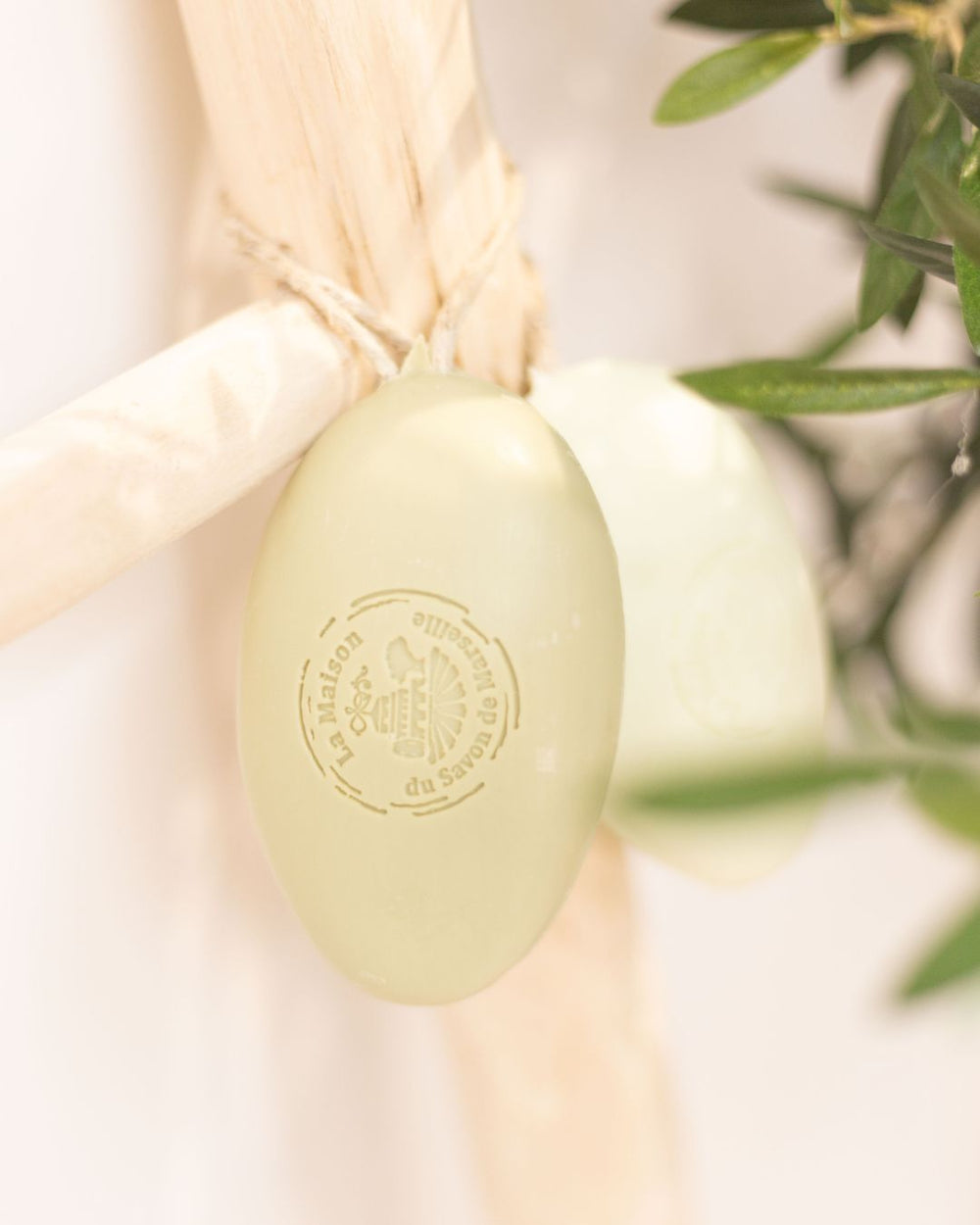 Săpunul nostru oval cu sfoară de cânepă, fabricat în Provence, este îmbogățit cu lapte de măgăriță organic și cu parfum de Verbină.