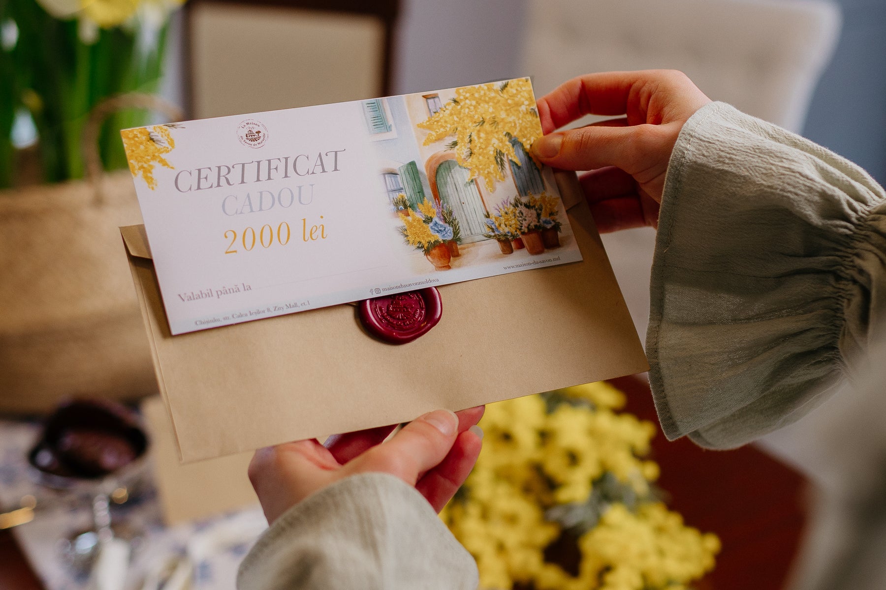 Îmbrăcate în Mimoză aurie, floarea emblematică a Provence-ului, certificatele cadou La Maison du Savon de Marseille sunt disponibile în magazinul nostru fizic și online.