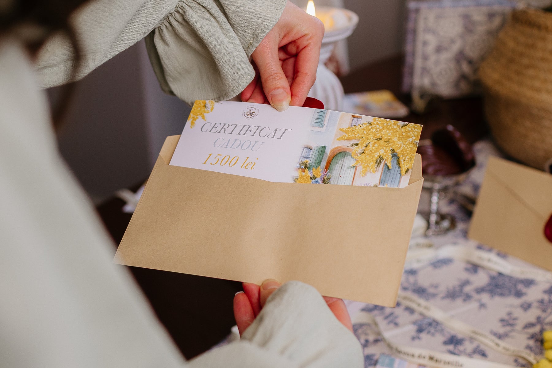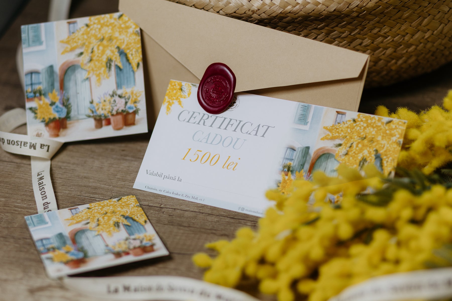 Îmbrăcate în Mimoză aurie, floarea emblematică a Provence-ului, certificatele cadou La Maison du Savon de Marseille sunt disponibile în magazinul nostru fizic și online.